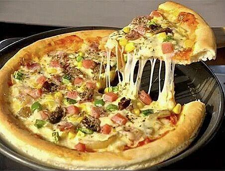 5. 烘烤:将披萨放入预热好的烤箱中,烘烤至芝士融化,表面金黄。